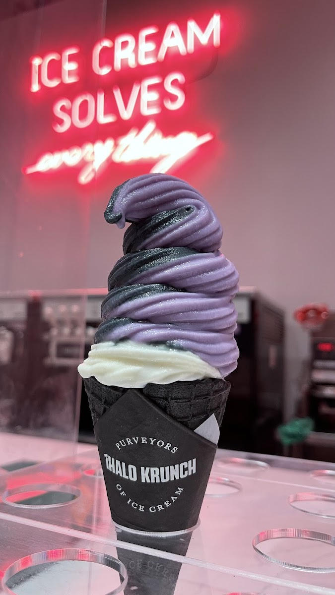 iHalo Krunch on Bloor Street West is an ice cream spot that stands out thanks to its playful and unconventional approach to flavors and presentation. This isn’t your typical scoop shop — locals often stop by here to experience unique tastes like ube, pandan, and activated charcoal coconut, which come with a surprisingly balanced sweetness and eye-catching colors that bring an element of fun to the visit.
