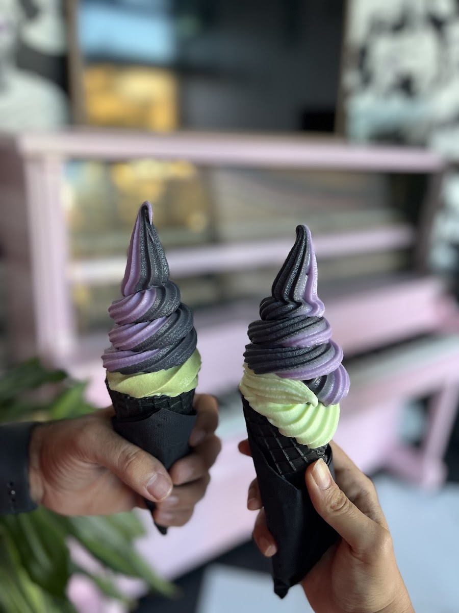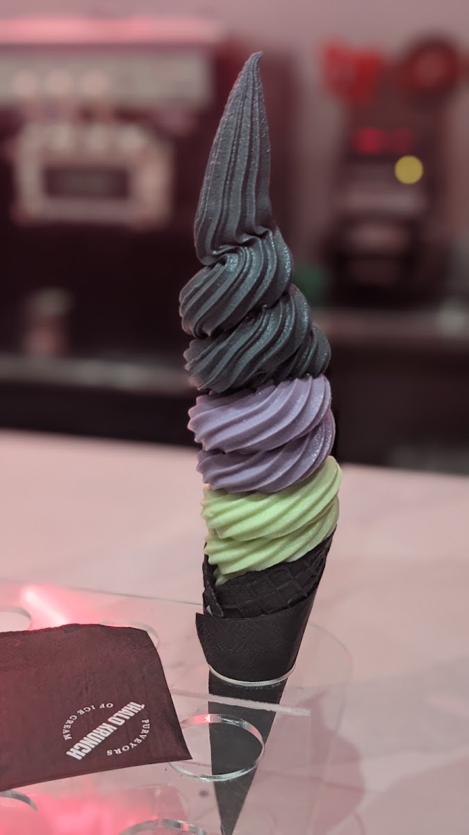 Most people come here looking for a refreshing treat on a warm afternoon or as a sweet stop while exploring the neighborhood. The menu includes a variety of soft serve ice creams served in cones that themselves are a visual draw—charcoal cones add a dramatic contrast to the vibrant ice cream colors. Beyond soft serve, bubble tea options with boba are also available, sometimes paired with the ice cream for those after a textural twist. While some find the tapioca pearls less appealing, the drinks bring an extra layer of local appeal, blending two popular dessert trends in one place.